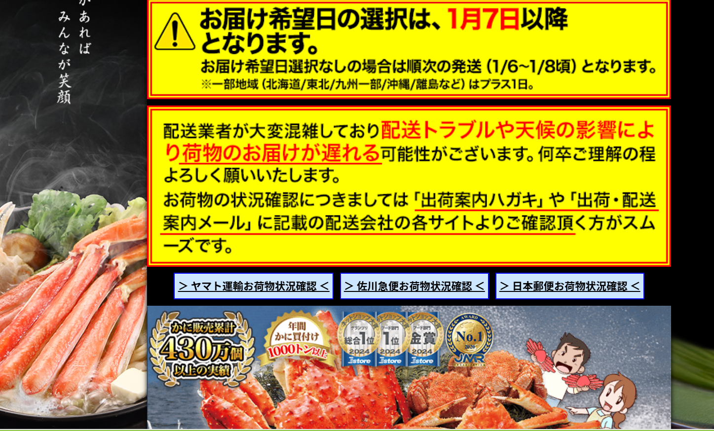完璧に見えるかに本舗ですが、購入時に注意すべき点もいくつかあります。